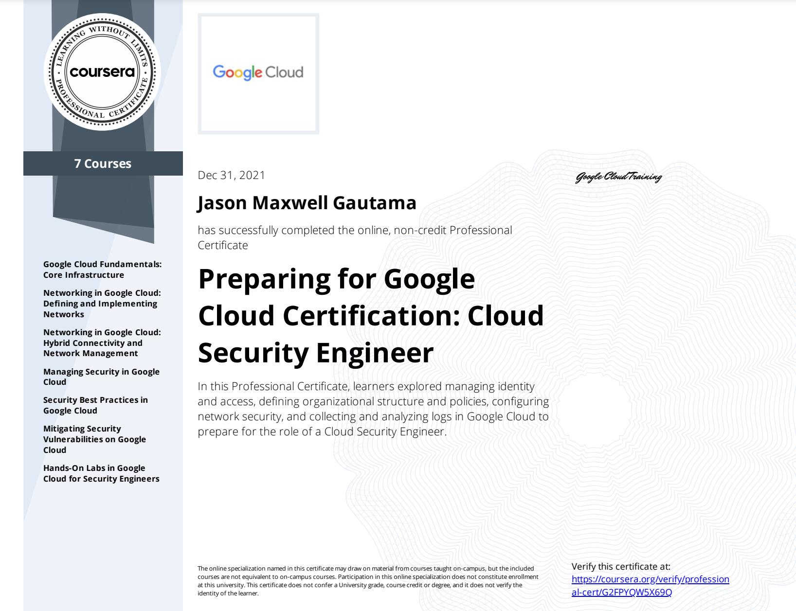 I have pursued several course certifications to demonstrate my enthusiasm for learning new skills and develop a strong foundation in cloud security and distributed system.
